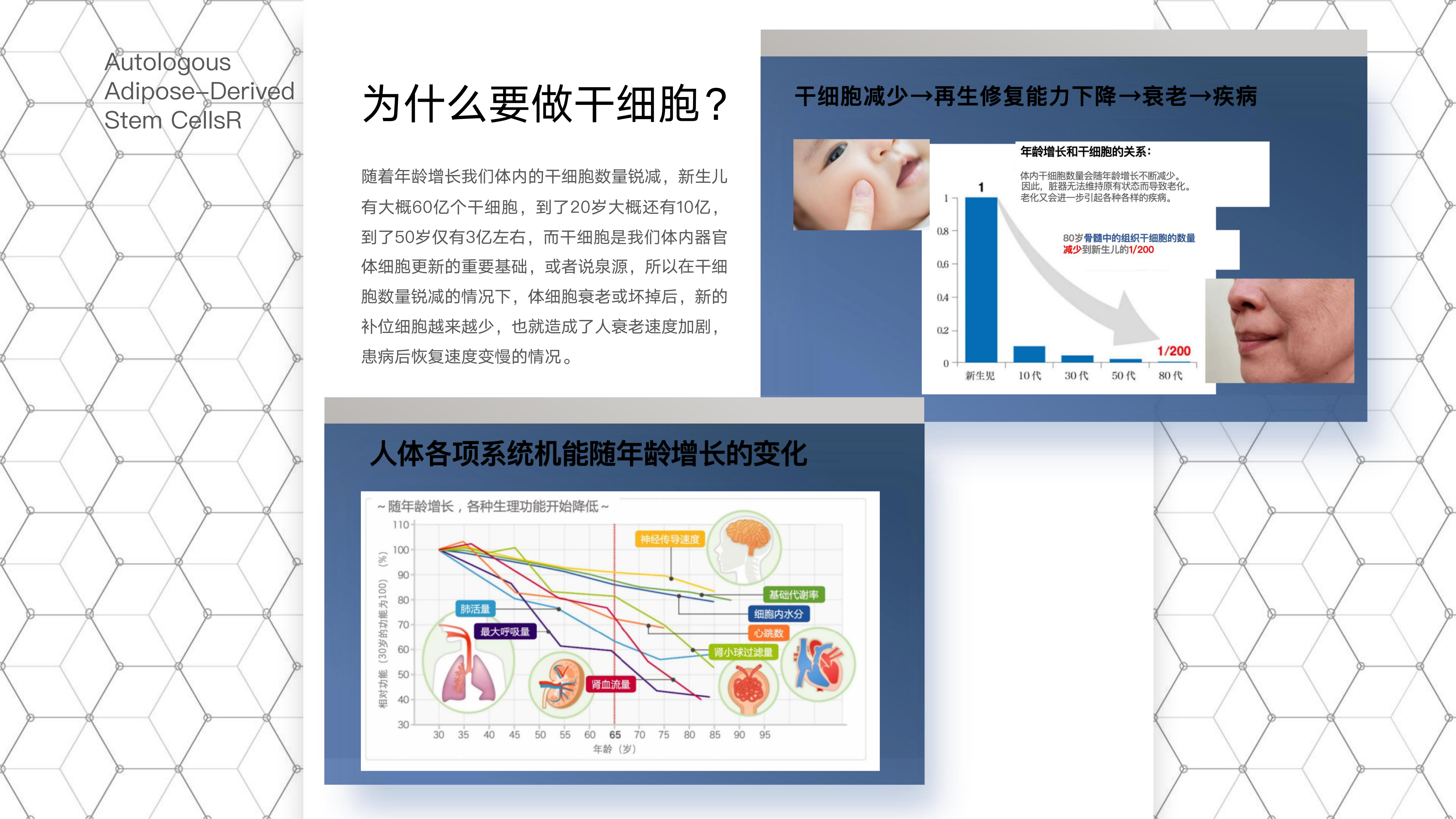 通过干细胞与免疫细胞的自我更新和多向分化能力,修复受损组织、调节免疫系统,从而在抗衰老、慢病管理以及器官功能改善方面发挥作用。