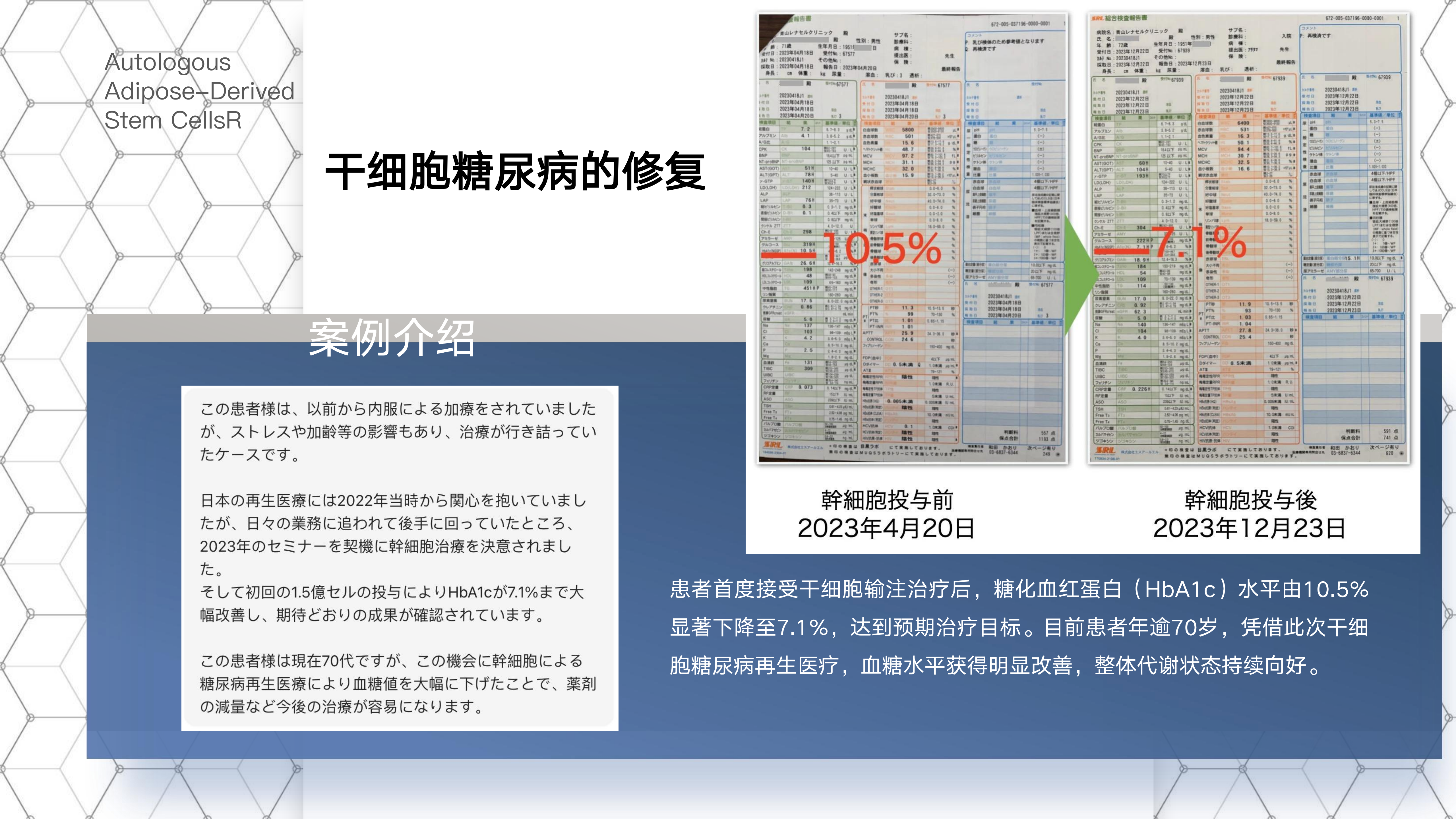 我们的"Ginza NOA"技术重新定义了干细胞的鲜活度,实现0小时剥离回输,最大化修复效果。